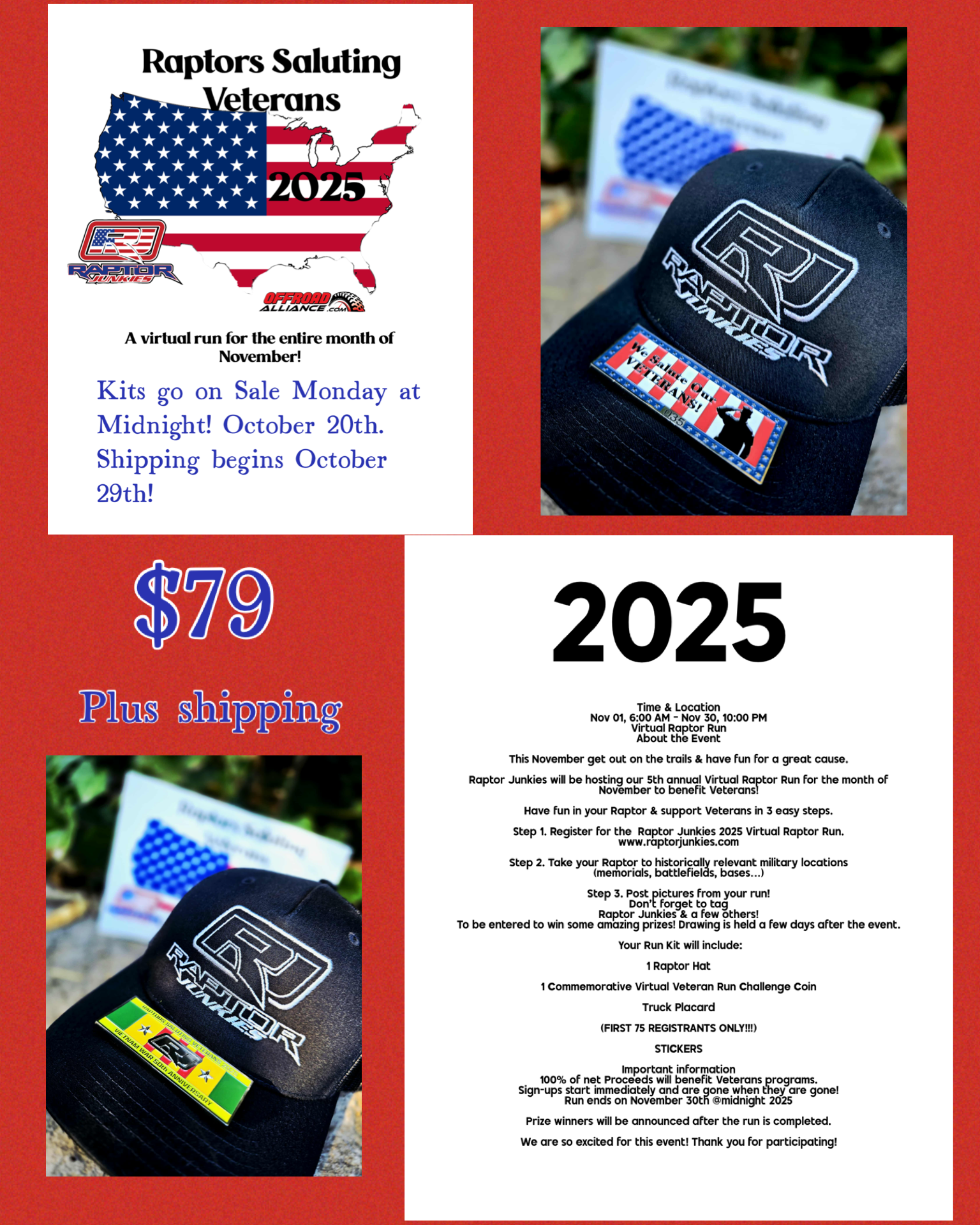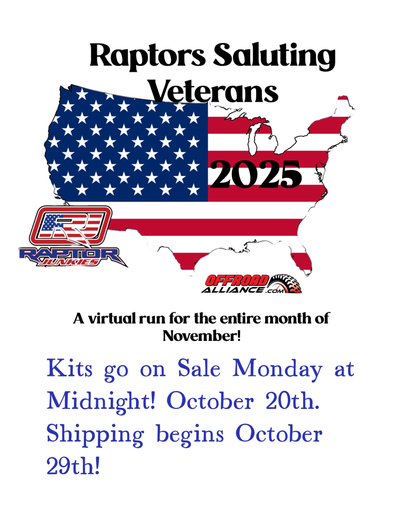 Raptor Junkies will be hosting our 4th annual Virtual Raptor Run for the month of November to benefit Veterans!